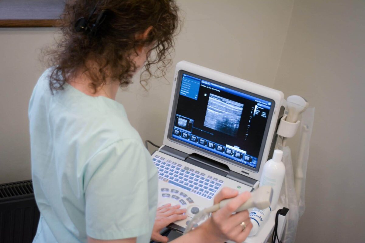 USG w pracy fizjoterapeuty uroginekologicznego pozwala ocenić stan mięśni dna miednicy, mięśni brzucha i kresy białej oraz pomaga nauczyć pacjenta aktywować mięsień lub grupy mięśniowe, nad którymi chcemy pracować.